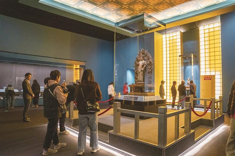 西藏博物館副研究員程忠紅表示,《祥開(kāi)萬(wàn)象——故宮與西藏文物聯(lián)展》不僅是一次文物精品跨越山河的深情相會(huì),也是一次穿越歷史時(shí)空的文化對(duì)話,更是貫徹落實(shí)新時(shí)代黨的治藏方略、推動(dòng)各民族交往交流交融、增強(qiáng)中華文化認(rèn)同的重要舉措,也是豐富人民群眾精神文化生活、促進(jìn)西藏文化事業(yè)繁榮發(fā)展的具體實(shí)踐。圖/記者 桑旦歐珠