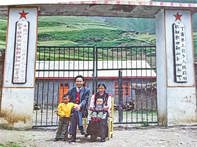 1988年,阿旺慈誠和妻子、孩子在上衣鄉(xiāng)政府門前的合影。(圖片由受訪者提供)
