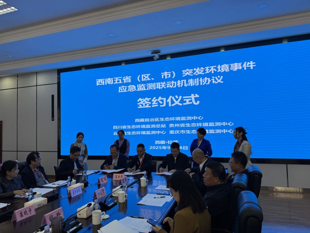 開幕式上,裁判員代表與參賽選手代表分別作了表態(tài)發(fā)言。隨后,會議組織簽訂了《西南五?。▍^(qū)、市)突發(fā)環(huán)境事件應(yīng)急監(jiān)測聯(lián)動機制協(xié)議》。西藏自治區(qū)生態(tài)環(huán)境監(jiān)測中心與重慶市、貴州省、四川省、云南省生態(tài)環(huán)境監(jiān)測機構(gòu)的代表共同簽署文件,旨在建立起應(yīng)對跨區(qū)域環(huán)境風(fēng)險的協(xié)同協(xié)作機制。