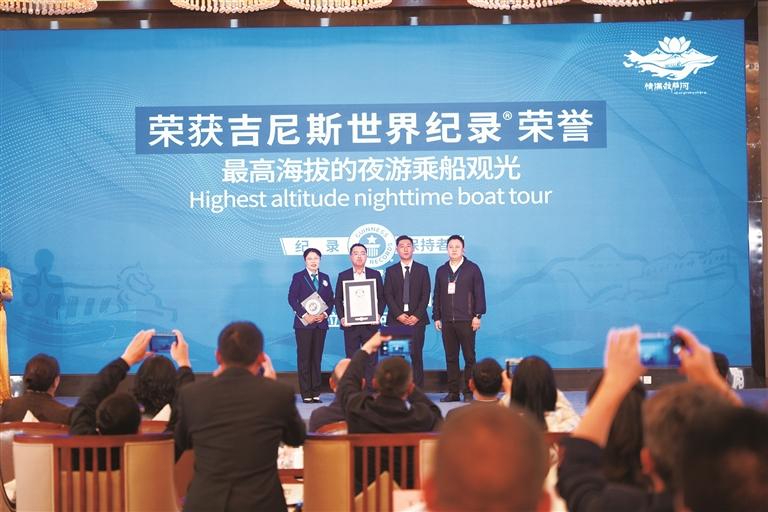 現(xiàn)場評審紀(jì)實片中,拉薩河光影與建筑的交融之美、餐秀演藝?yán)锏奶妻寺?、藏式游船的水上體驗,充分展示了《情滿拉薩河》的專業(yè)水準(zhǔn)。吉尼斯世界紀(jì)錄的認(rèn)證加冕,屬于每一位《情滿拉薩河》項目的創(chuàng)制者、參與者、支持者和關(guān)注者,更是獻(xiàn)給高原文旅的匠心之作。