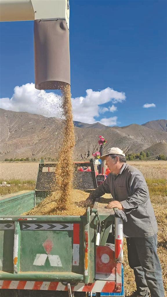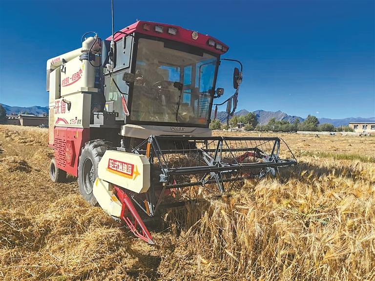 桑珠孜區(qū)東嘎鄉(xiāng)色定村收割機助力秋收。