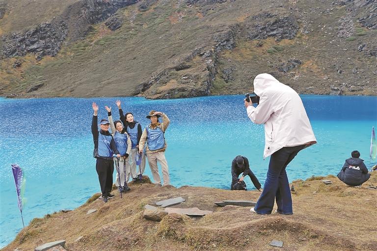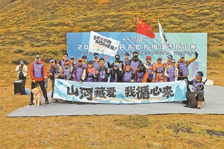 圖為參賽者們在古如拉措合影留念。記者 武沛濤 攝