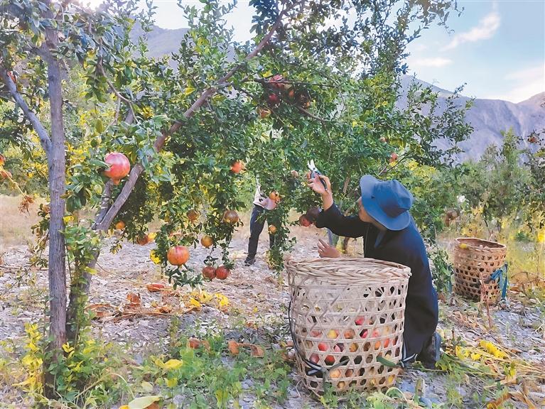 目前,昌西村的軟籽石榴開始采摘,第一批就拉走了1500件果實,總計1.4萬斤,村民們很快拿到了首批貨款?!拔壹医衲曩u了2500公斤石榴,收入近4萬元,比去年多了1萬多塊!”羅布旺堆拿著現金,臉上滿是笑容。
