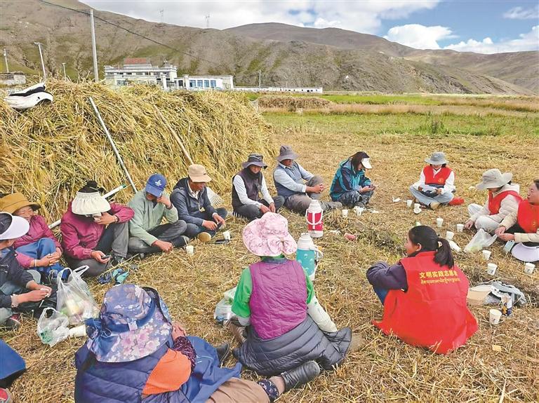 看到這場景,哈西社區(qū)的普布剛組主動喊上鄰居幫老人次仁頓旦收糧:“志愿者幫我們收糧,我們更該互幫互助。”如今,浪卡子全鎮(zhèn)已有80余戶自發(fā)加入互助隊伍,“紅色身影”帶動“群眾身影”,田間地頭處處涌動著暖心畫面。