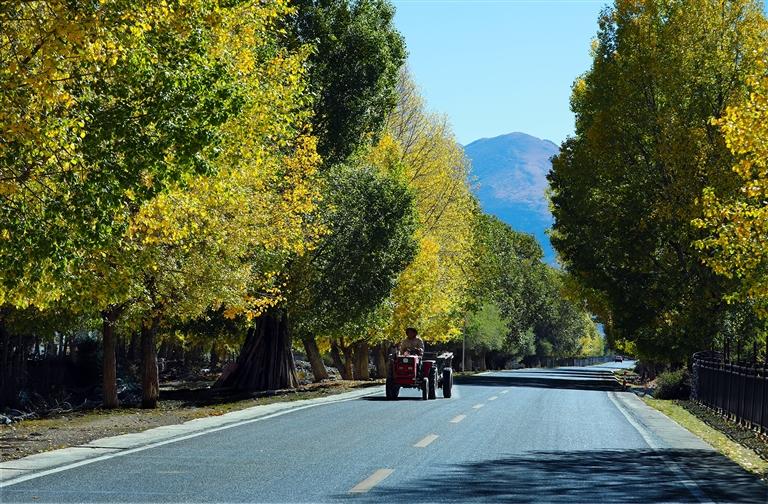 沿著318國道向東南方向行進至拉薩市墨竹工卡縣日多鄉(xiāng),沿途秋景宛如大自然不慎打翻的調(diào)色盤,濃烈的色彩撲面而來,讓人還沒來得及細細品味,便已深深沉醉其中。