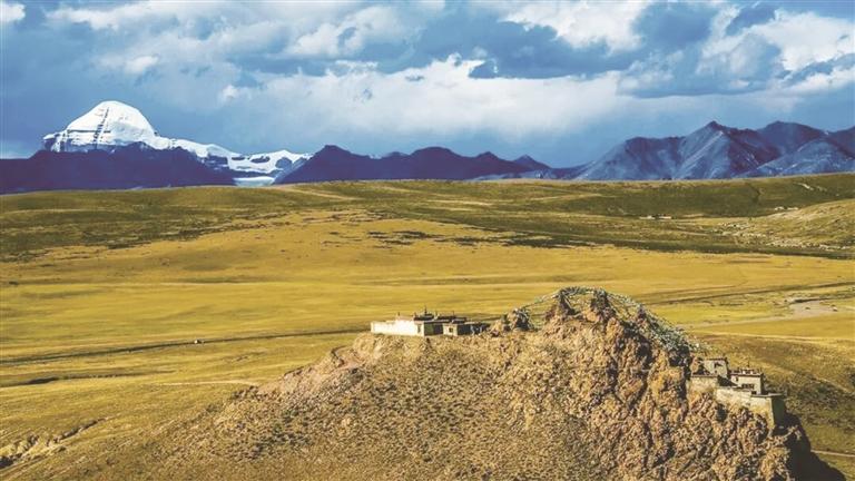 初冬的岡仁波齊,少了幾分擁嚷的喧囂,多了幾分深沉的靜穆,金字塔狀的峰頂覆蓋著終年不化的積雪,在陽光下閃爍著清冷而神圣的光。而最動人的,是山腳下那片被朔風浸染的金色草甸——像是大自然特意為神山鋪就的暖黃色地毯,柔軟、遼闊,與山頂?shù)睦渚籽┬纬蓽厝岬膶Ρ取D憧梢栽谇宄繒r分靜坐坡上,等待第一縷陽光點亮山尖,也可以在傍晚時分,看夕陽把整片草場染成琥珀色。那一刻你會明白,山不只是一座山,它是一種存在、一種守護,一種讓你放下所有浮躁的、巨大的安寧。