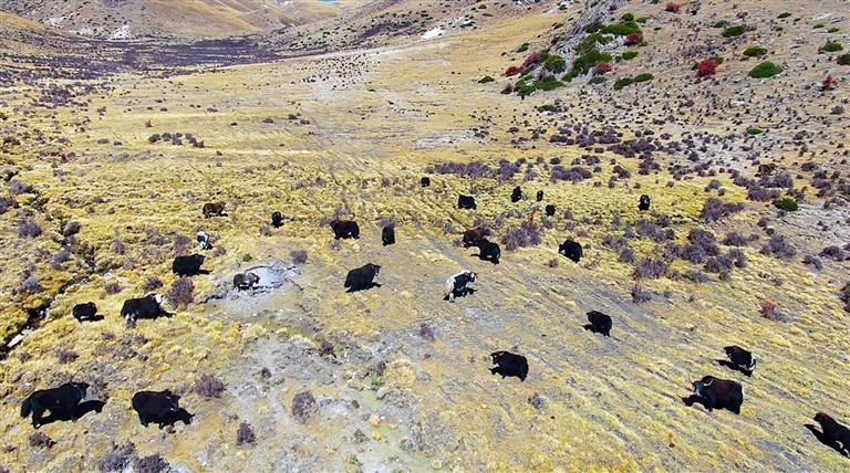 拉龍村放養(yǎng)的牦牛。