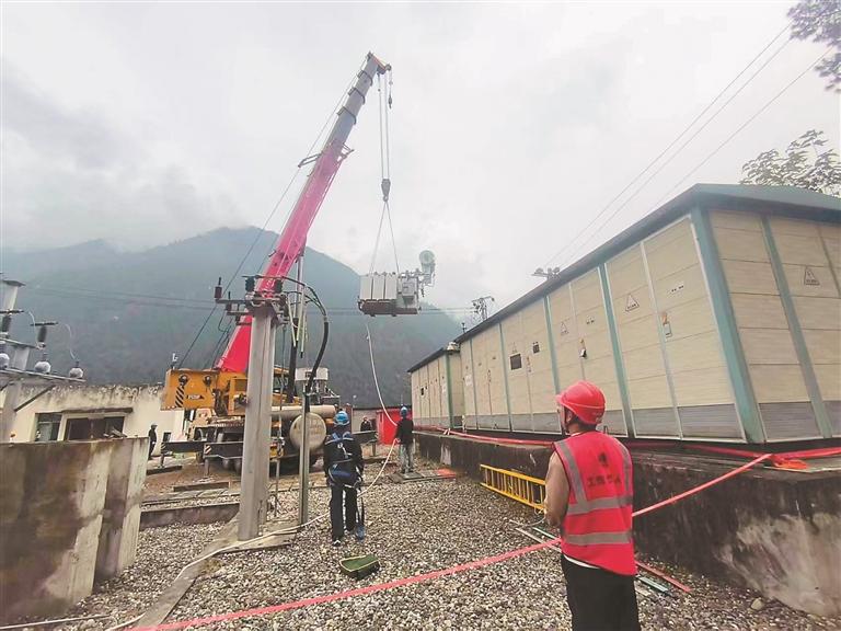 圖為國網察隅縣供電公司工作人員正在對變壓器進行改造施工。記者 劉楓 攝