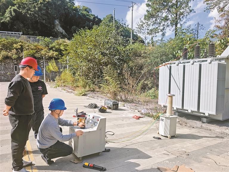 圖為國網察隅縣供電公司工作人員正在對變壓器進行試驗調試。記者 劉楓 攝