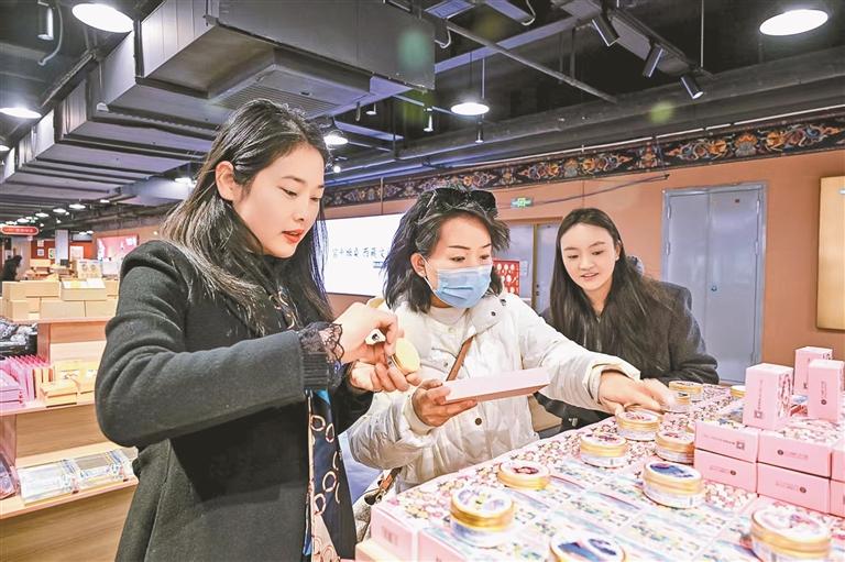 圖為消費(fèi)者在展示中心內(nèi)購(gòu)買特色產(chǎn)品。記者 楊小娟 攝