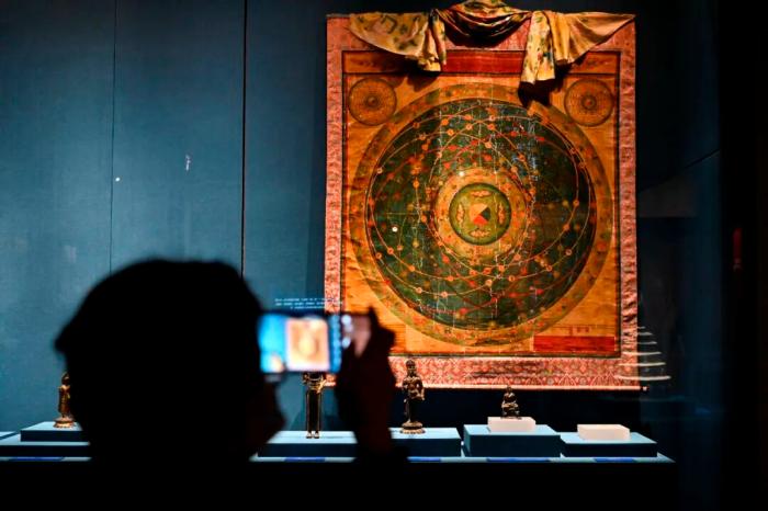 2020年11月6日,游客在廣州廣東省博物館參觀“唐蕃古道——七省區(qū)精品文物聯(lián)展”。中新社記者 陳驥旻 攝