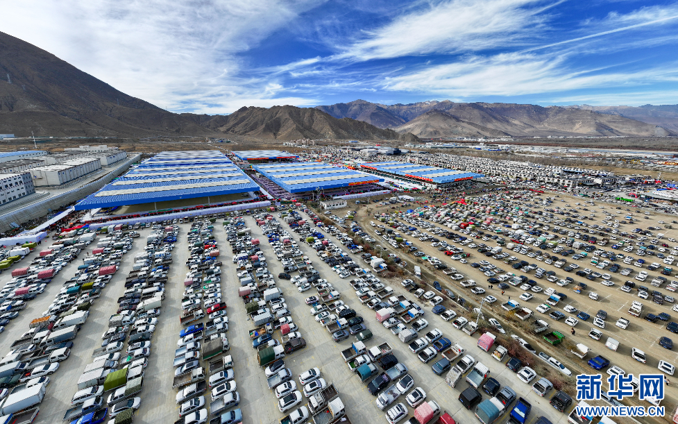 12月1日,西藏自治區(qū)山南市第45屆雅礱物資交流會現(xiàn)場(無人機照片)。新華網(wǎng) 旦增努布 攝