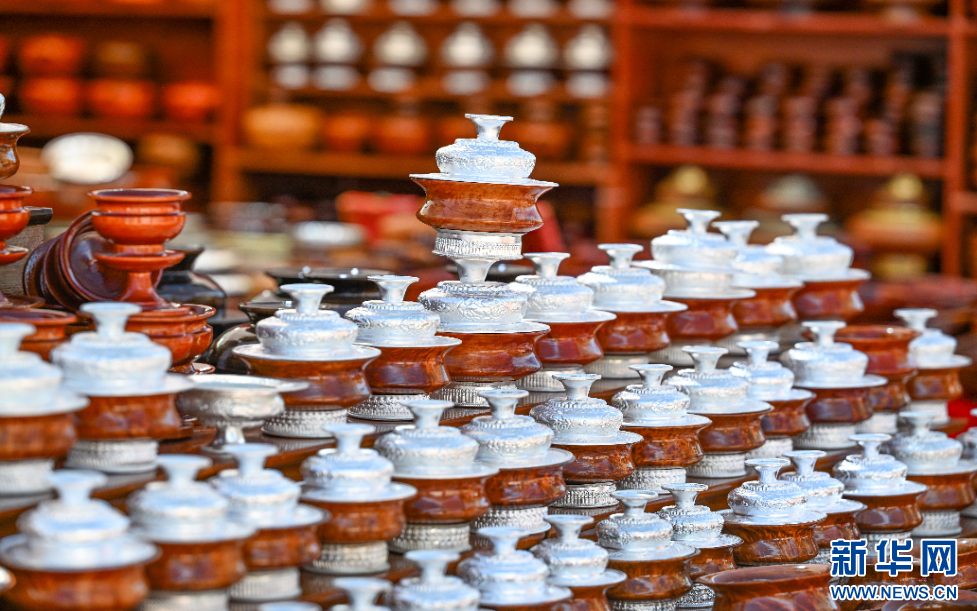 圖為西藏自治區(qū)山南市第45屆雅礱物資交流會上展示的木碗(12月1日攝)。新華網(wǎng) 旦增努布 攝