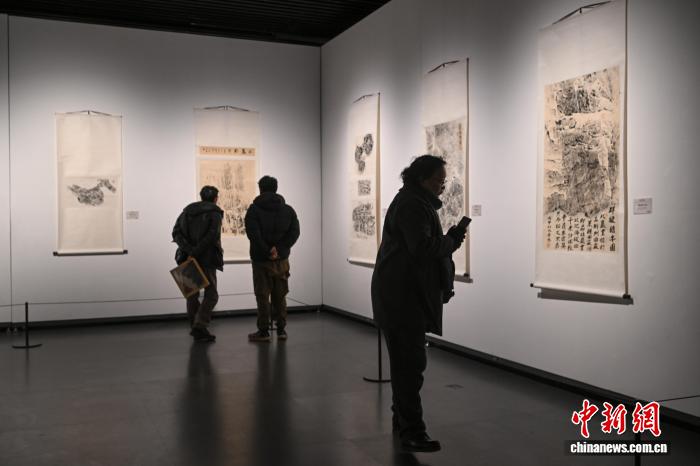 1月6日,青海省玉樹藏族自治州玉樹市“遠(yuǎn)古史畫”巖畫石刻拓片藝術(shù)展在西藏美術(shù)館開幕。據(jù)悉,此次展覽是玉樹市歷史文化研究院近十年考古拓印工作的成果結(jié)晶,展覽精選百余幅拓片精品,時(shí)間跨度從青銅時(shí)代延伸至吐蕃時(shí)期。展品以牦牛、騎者等高原特色形象和狩獵、祭祀等先民生活場景為核心,清晰還原了巖畫粗獷古樸的鑿刻紋理,生動(dòng)呈現(xiàn)了多民族文化交融的歷史脈絡(luò)。展期將持續(xù)至2月10日。圖為觀眾欣賞展覽中的巖畫石刻拓片作品。中新社記者 貢嘎來松 攝