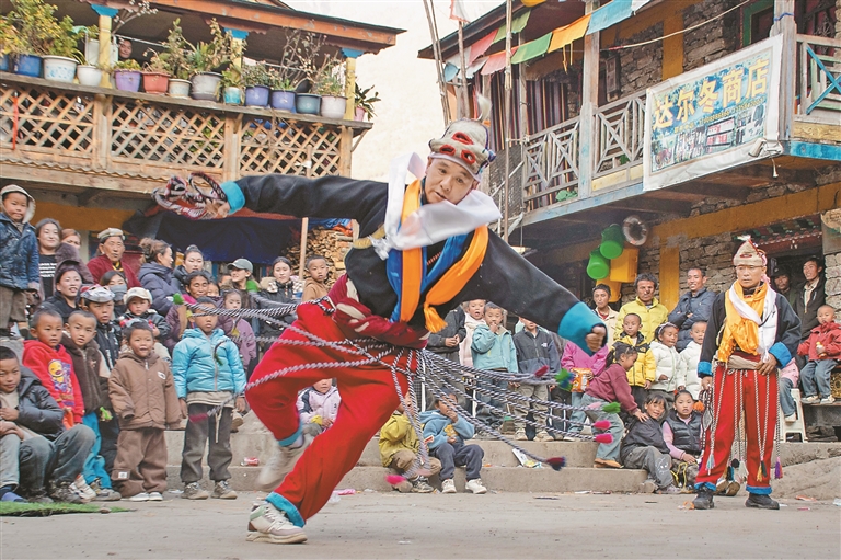 圖為演職人員在表演夏爾巴瑪尼戲。石達 潘多 攝