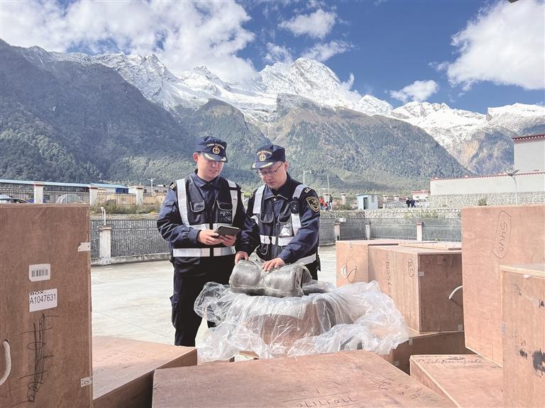 工作人員正在查驗(yàn)貨物。圖由拉薩海關(guān)提供