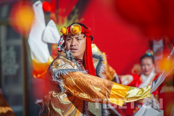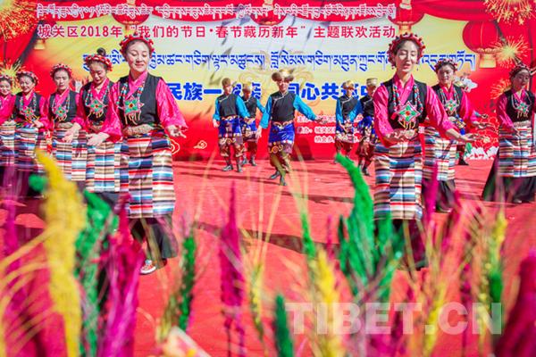 中國(guó)西藏網(wǎng)訊 2月8日上午,拉薩市城關(guān)區(qū)藏?zé)嵘鐓^(qū)張燈結(jié)彩,彩旗飄揚(yáng),2018年“我們的節(jié)日o春節(jié)藏歷新年”主題聯(lián)歡活動(dòng)拉開帷幕,來(lái)自城關(guān)區(qū)的雪巴拉姆民間藝術(shù)團(tuán)、娘熱拉姆民間藝術(shù)團(tuán)、阿壩林老年文藝隊(duì)的演員們?yōu)楦髯迦罕妿?lái)了一場(chǎng)視聽盛宴。