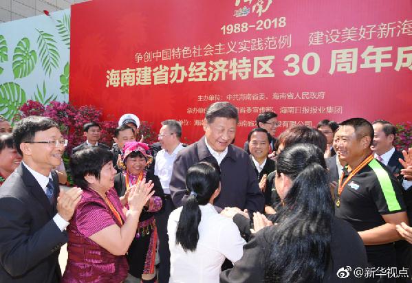 13日上午,習近平總書記在??谑袇⒂^了海南建省辦經(jīng)濟特區(qū)30周年成就展,對30年來特別是黨的十八大以來海南經(jīng)濟社會發(fā)展成就給予肯定。他指出,貫徹黨中央精神不是喊口號,要結合當?shù)貙嶋H、經(jīng)過深入調(diào)研形成符合黨中央精神的一系列具體舉措,并在實施中早見成效、大見成效。
