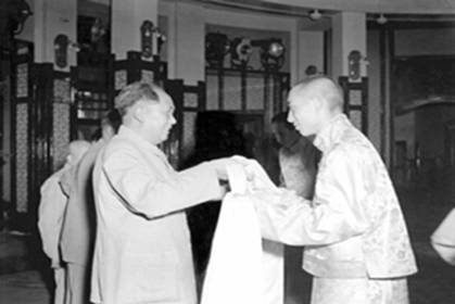 1949年10月1日,中華人民共和國(guó)成立,十世班禪大師當(dāng)天致電毛澤東主席和朱德總司令,熱情頌揚(yáng)中華人民共和國(guó)成立,稱(chēng)“人民之康樂(lè)可期,國(guó)家之復(fù)興有望”,并希望西藏也能早日獲得解放。