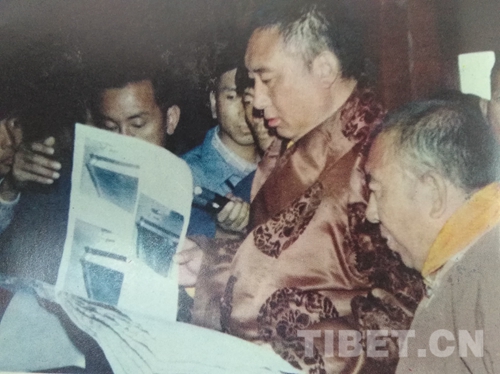 圖為班禪大師審查重建班禪東陵“扎什南捷”的圖片。圖片翻拍自《西藏文史資料選輯》