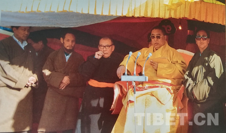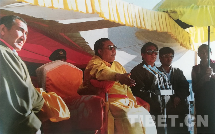圖為十世班禪大師在幸福灘上誦經祈禱,祝愿海南州昌隆、繁榮,各族人民幸福、吉祥。