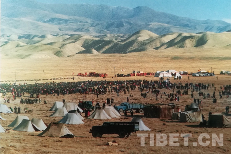 圖為渴盼得到十世班禪大師摩頂?shù)娜罕姳燃缃吁啵瑓R聚草場,恭候那一幸福的時刻。