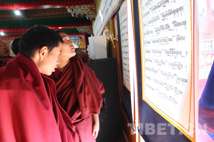 此次活動共征集書法作品80余幅,包含藏文、梵文、漢文、英文,其中藏文書法當(dāng)中又有烏金和烏梅體、草書體和古藏文體等多種書法類型,不僅展現(xiàn)了藏文書法精美多樣的字體和悠久歷史,而且表達(dá)了全寺僧眾深切緬懷大師的至真感情和銘記大師教誨,積極發(fā)揚(yáng)藏傳佛教愛國愛教優(yōu)良傳統(tǒng)的堅定信心。(中國西藏網(wǎng) 記者/索朗加措、趙耀 圖片由扎什倫布寺寺管會提供)