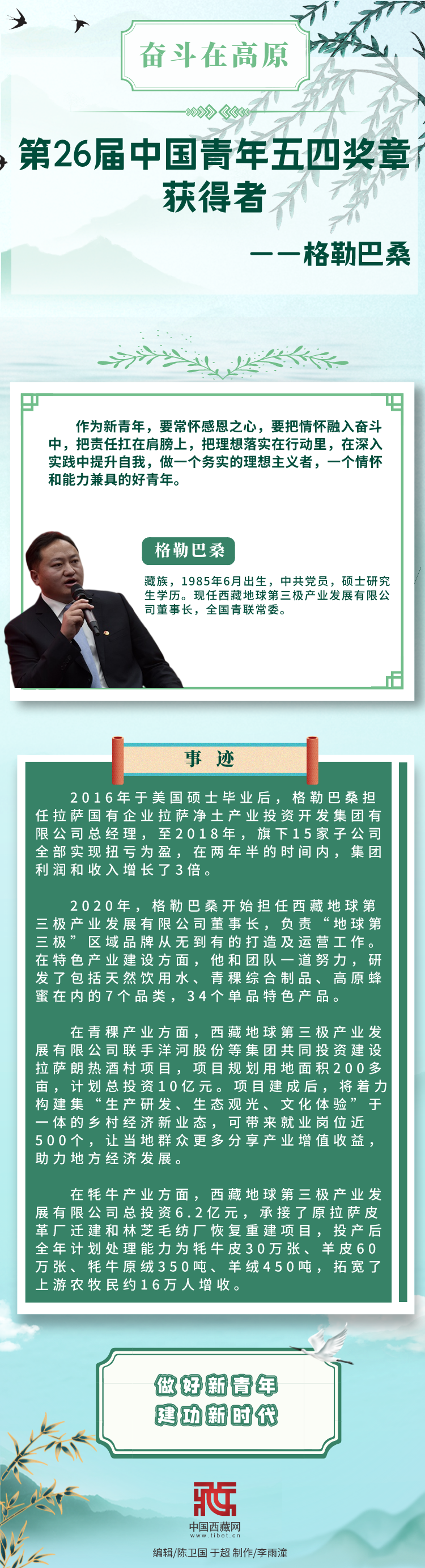 長圖|【奮斗在高原】第26屆中國青年五四獎?wù)芦@得者——格勒巴桑