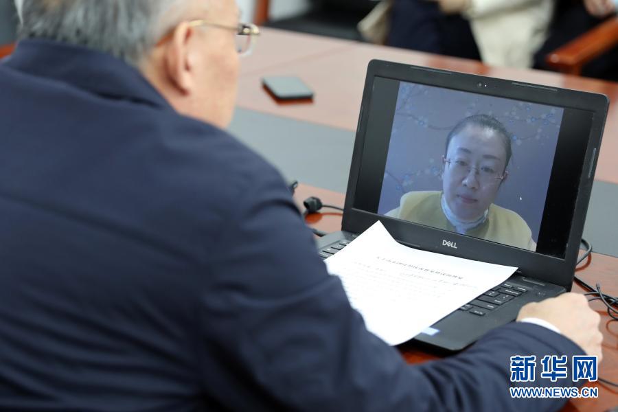 3月10日,全國政協(xié)十三屆四次會議在北京人民大會堂新聞發(fā)布廳舉行第三場“委員通道”采訪活動。這是記者(屏幕中手持話筒者)通過網(wǎng)絡視頻方式提問。新華社記者 王南 攝