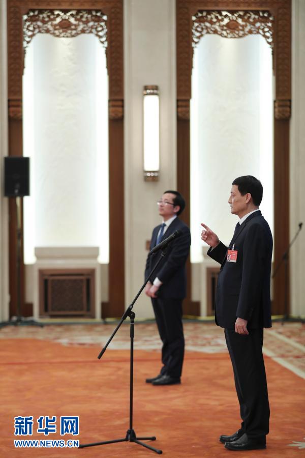 3月8日,第十三屆全國(guó)人民代表大會(huì)第四次會(huì)議舉行第二場(chǎng)“部長(zhǎng)通道”采訪活動(dòng)。這是商務(wù)部部長(zhǎng)王文濤(右)通過(guò)網(wǎng)絡(luò)視頻方式接受采訪。