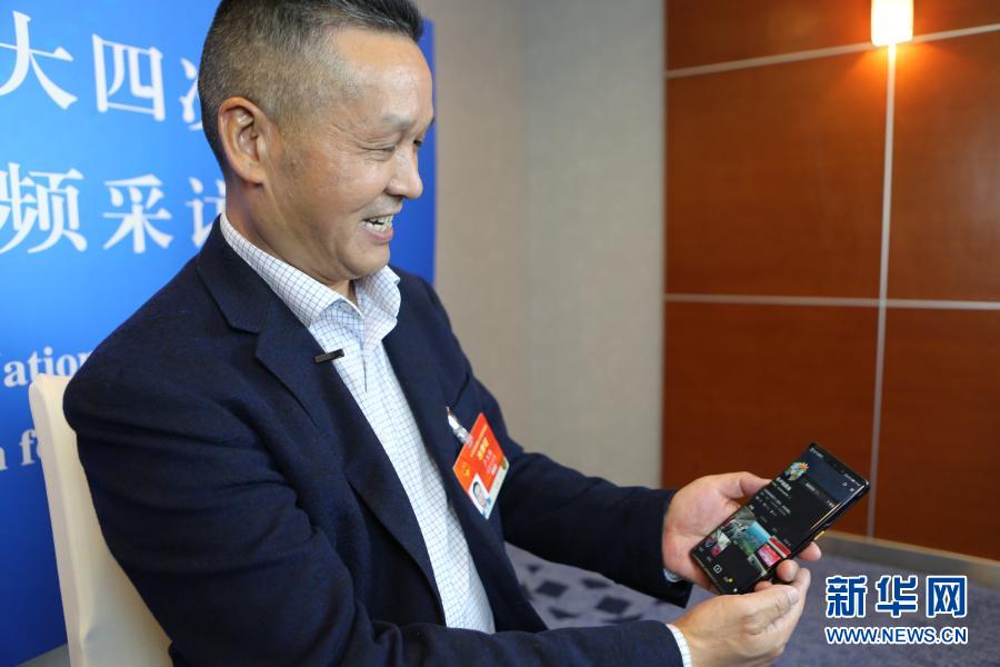 3月3日,全國人大代表、福建永泰縣希安油茶專業(yè)合作社負責(zé)人盧玉勝在駐地接受采訪時展示他為宣傳油茶開通的社交媒體賬號。新華社記者 吳雨 攝