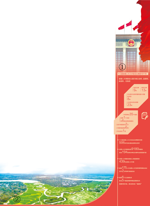 十三屆全國人大三次會議以來的10個(gè)月,全國人大常委會制定法律9件,修改法律13件,作出有關(guān)法律問題和重大問題的決定8件,正在審議的法律案23件。[詳細(xì)] -