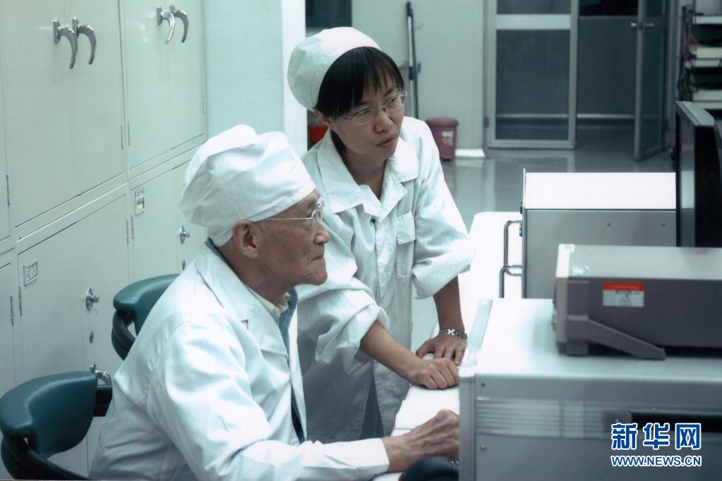 陸元九院士在航天時代電子公司激光陀螺實驗室與同事探討問題(2006年攝)。新華社發(fā)(中國航天科技集團(tuán)供圖)