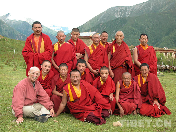 圖為1997年8月,海峽兩岸藏學研討會后,兩岸藏學學人在青海黃南州河南蒙旗考察,陳慶英先生(中)和與會部分學者合影