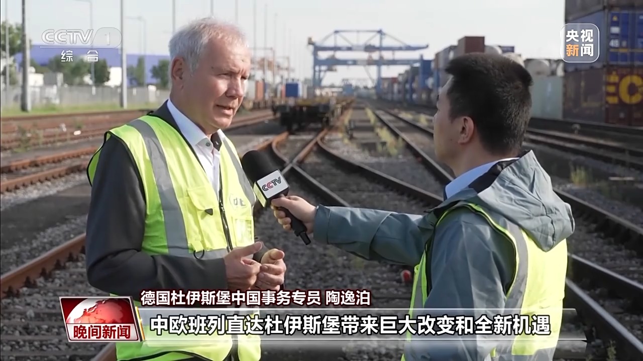 德國杜伊斯堡中國事務專員 陶逸泊:中歐班列直達杜伊斯堡帶來巨大改變和全新機遇。這條線路綿延上萬公里,從中國出發(fā)穿越6個國家,抵達我們這里。一切工作能在十幾天內完成,非常了不起。