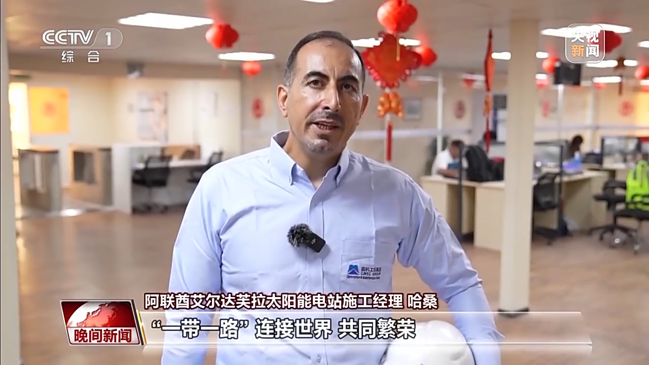 阿聯(lián)酋艾爾達芙拉太陽能電站施工經理 哈桑:“一帶一路”連接世界,共同繁榮。