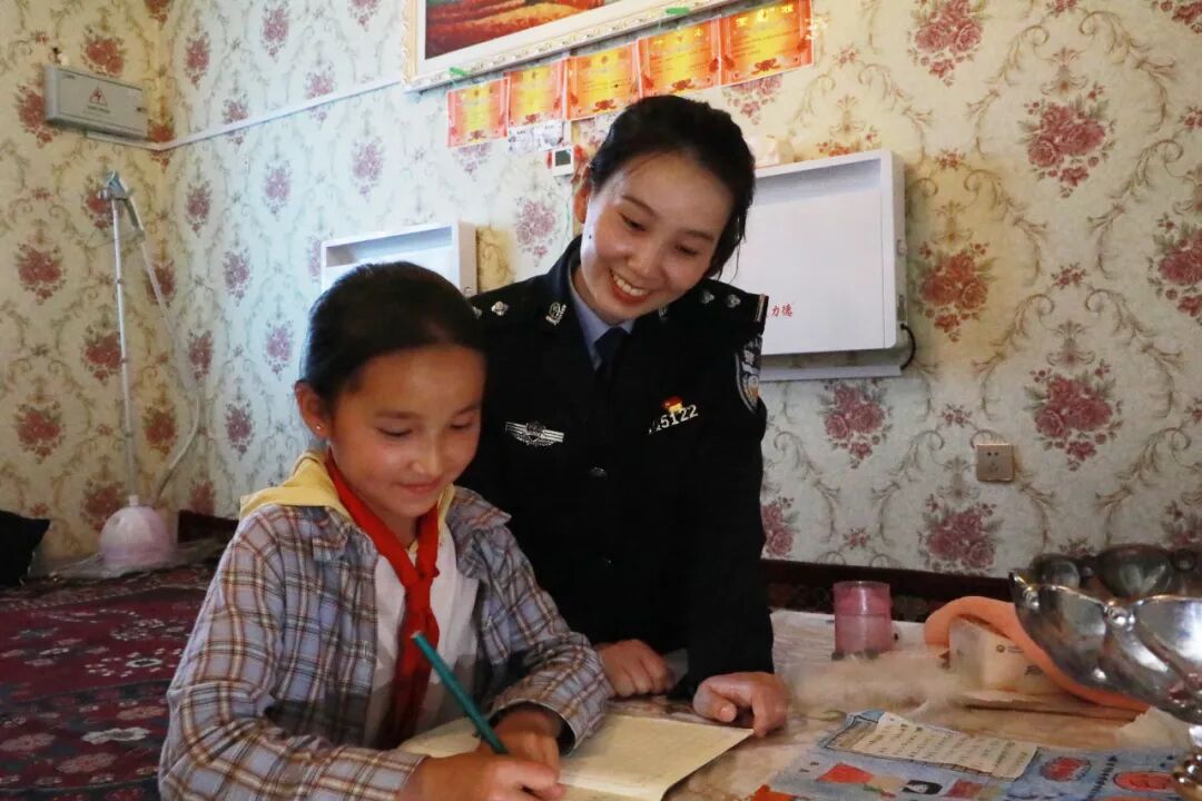 “西極愛(ài)心小分隊(duì)”家訪后了解到阿麗娜的家庭情況,民警沈美穎便成為這位柯爾克孜族姑娘的“知心姐姐”,多次到家中輔導(dǎo)功課,通過(guò)聊天談心鼓勵(lì)阿麗娜認(rèn)真學(xué)習(xí)。