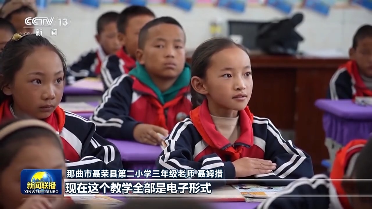 那曲市聶榮縣第二小學(xué)三年級(jí)老師 聶姆措:變化特別大,以前鄉(xiāng)鎮(zhèn)里面都是帳篷學(xué)校,黑板就是這么小的一個(gè)木板,冬天帳篷里面的話,手腳都是凍著的?,F(xiàn)在這個(gè)教學(xué)全部是電子形式,條件特別好。