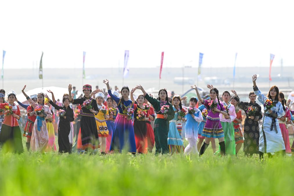 2024年7月14日,“相約草原·遇見那達(dá)慕”內(nèi)蒙古第34屆草原那達(dá)慕在錫林郭勒盟開幕,吸引游客前來感受草原文化。新華社記者 貝赫 攝