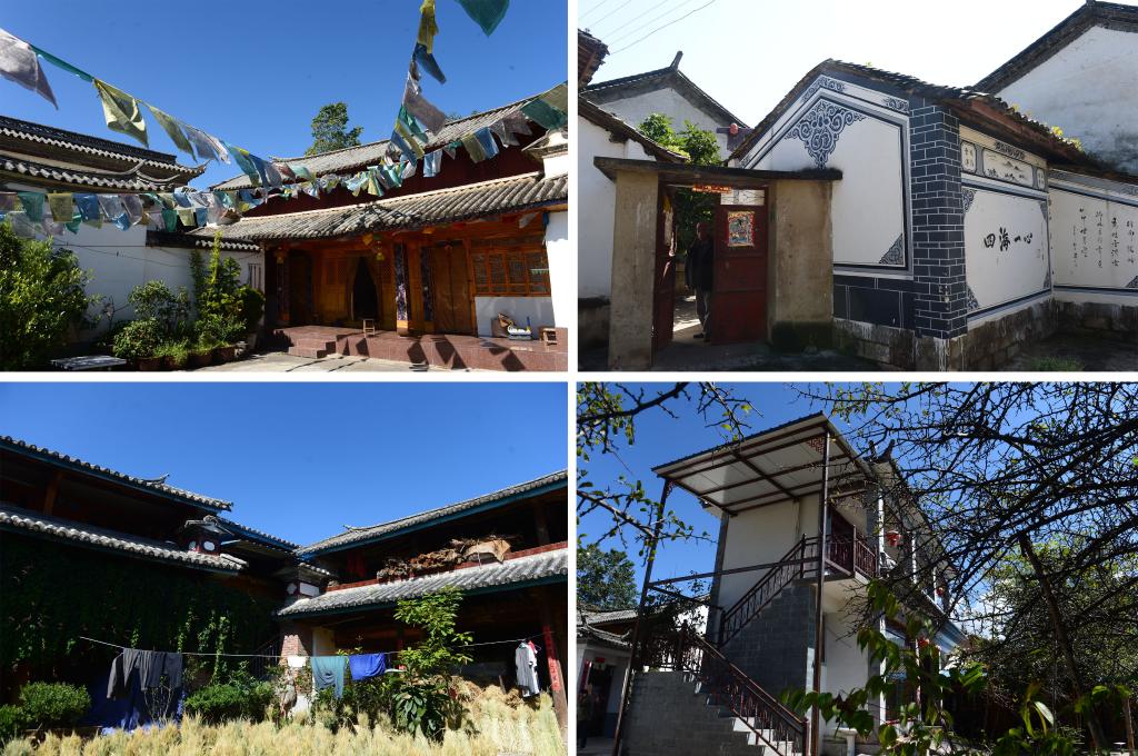 拼版照片:左上為鄭家莊藏族民居,右上為鄭家莊白族民居,左下為鄭家莊漢族民居,右下為鄭家莊納西族民居(2015年10月20日攝)。云南省大理白族自治州洱源縣三營鎮(zhèn)共和村鄭家莊是一個多民族聚集的村莊,分別有漢、白、藏、傣、納西、傈僳、彝共7個民族。多年來,這個村的村民團(tuán)結(jié)互助,相互交融,和諧相處。新華社記者 胡超 攝