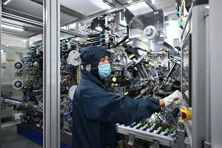 在山西陽(yáng)泉,華陽(yáng)新材料科技集團(tuán)華鈉芯能科技有限責(zé)任公司的工作人員在操控設(shè)備(2024年7月31日攝)。新華社記者 李鑫 攝